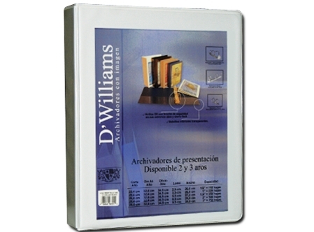 ARCHIVADOR A-4 C/PRESENTACION 2 AROS 1.5 BLANCO D-WILLIAMS