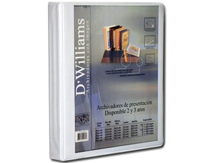 ARCHIVADOR CARTA C/PRESENTACION 3 AROS 1.0 BLANCO WILLIAMS